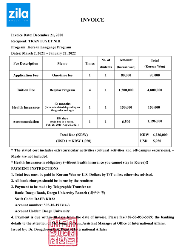 3. Hướng dẫn nộp hồ sơ tại Đại học Daegu